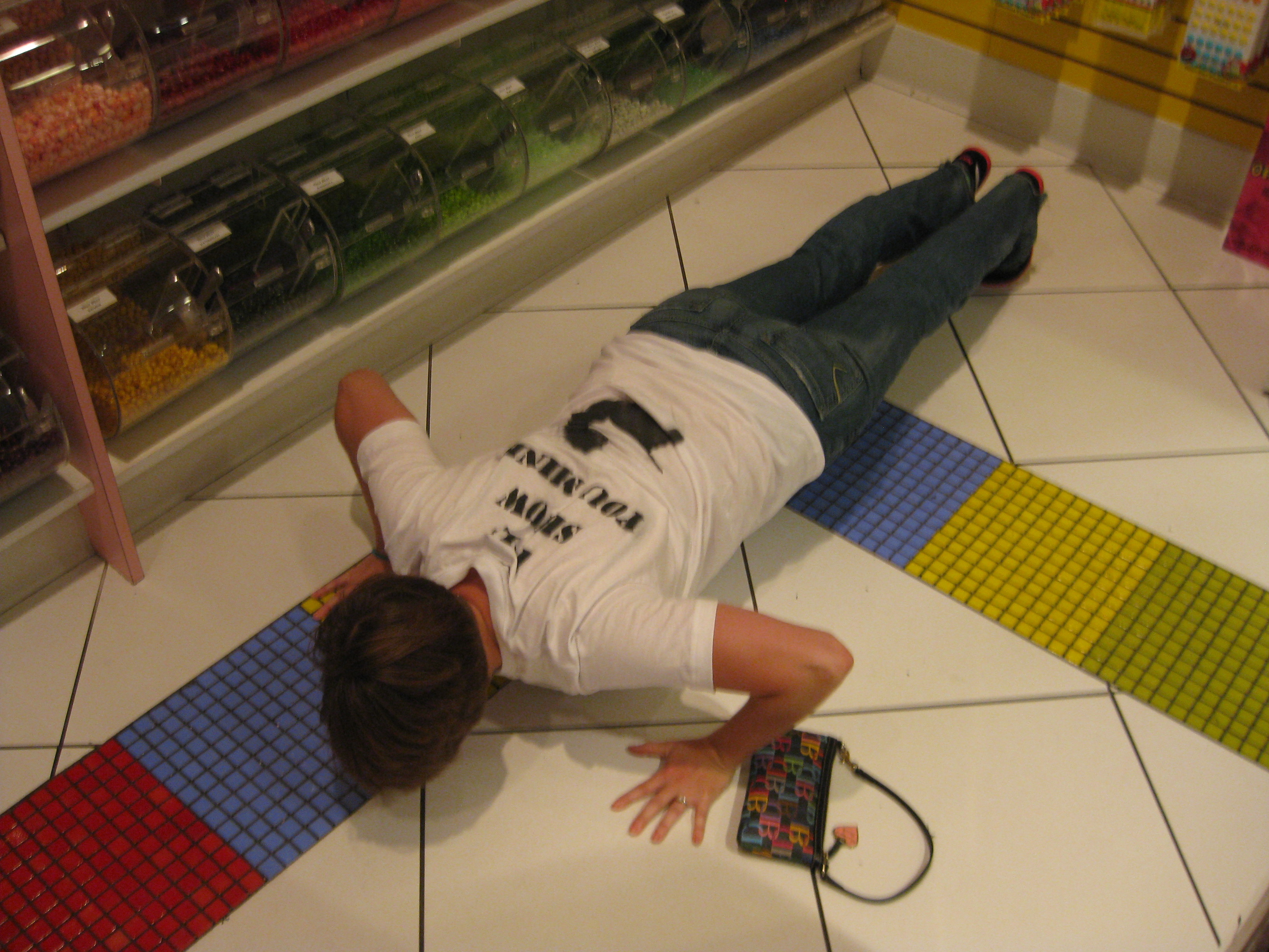 A nice deep push up right by the M&Ms. Not something they often see in a candy store.
