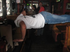We then took a nice walk to a bar called Whiskeys. Where I did a nice push up between booths.