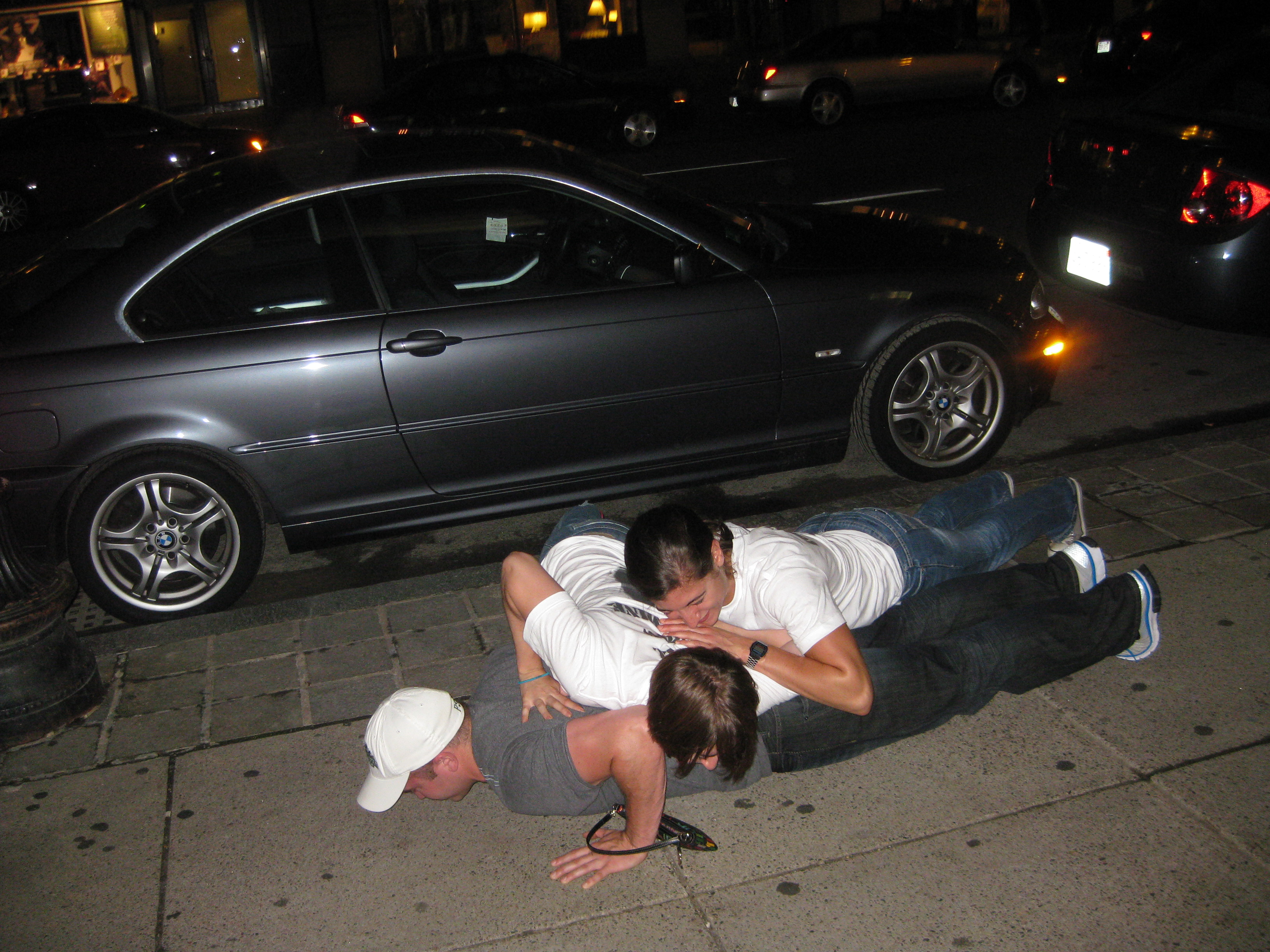 After leaving the roof deck, we attempted a stacked push up out on the street. We all ended up collapsing so I’m not totally sure this one counts…
