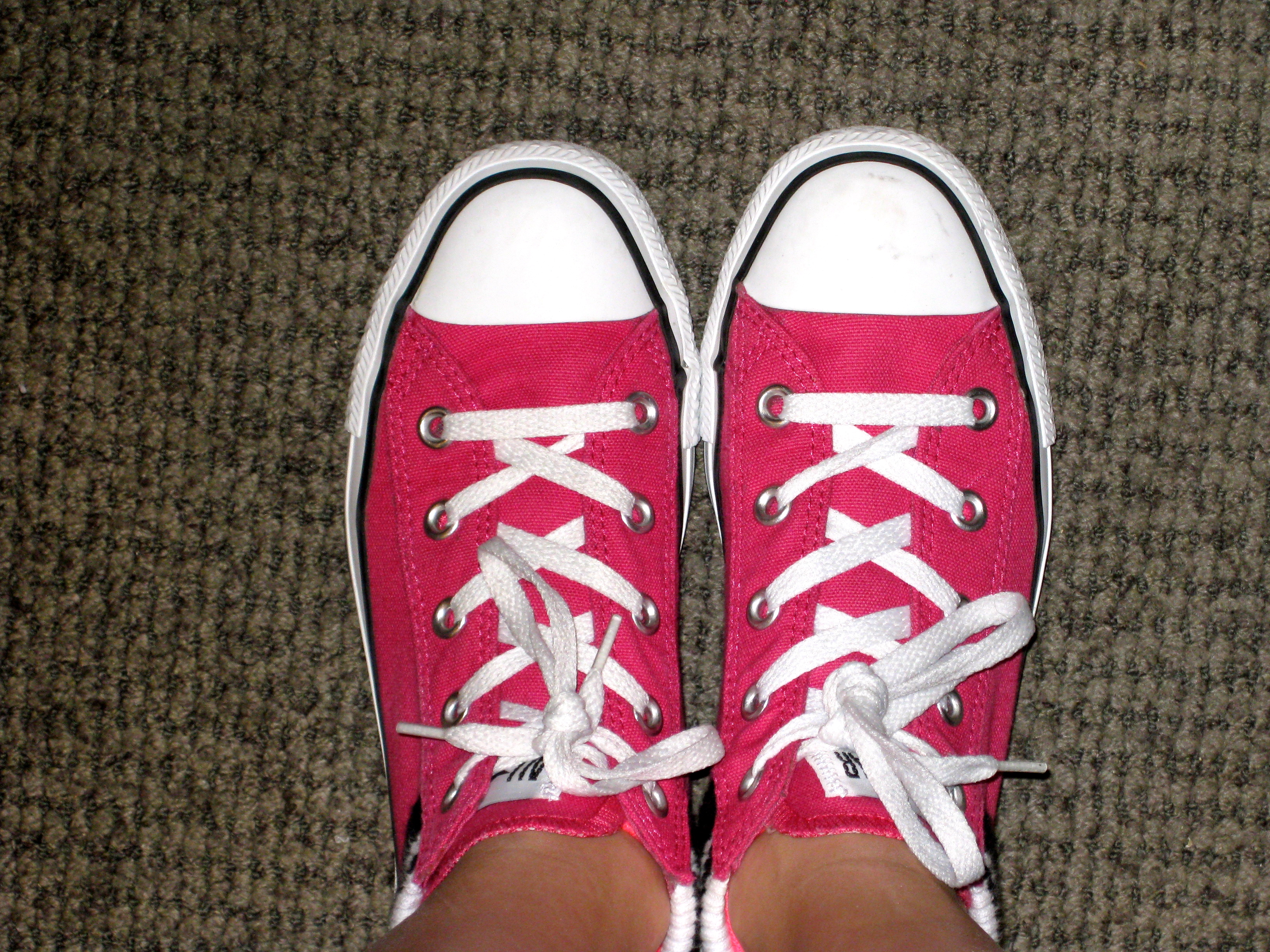 Yesterday I was very amused by Candy and my shoes. So much so that I actually took pictures. Candy was wearing her new school Vibrams and I was repping the old school Converse.