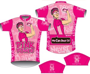 - I just want to start this post by saying that I LOVE this biking jersey for cancer that Jen sent me! Showing off the bicep! (It is definitely a lot of pink though).
