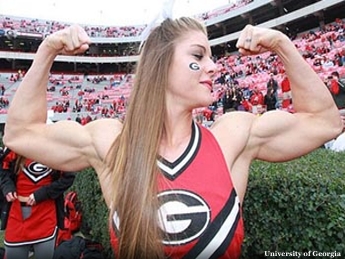 Secondly, I always have hated how the media jumps on these ladies who aesthetically look really muscled and toned, and then proceed to go crazy about how “strong” they are (and again, she IS strong, just, you know, not ridiculously so). But I think it’s images like hers, that show huge female biceps, that make the average woman afraid to lift heavy for fear of looking like that, as that is not necessarily the culturally accepted ideal. All I know is I can deadlift more than her, and I am not nearly as cut. Where’s the article about me? 😛 Oh wait, I am not a cheerleader…