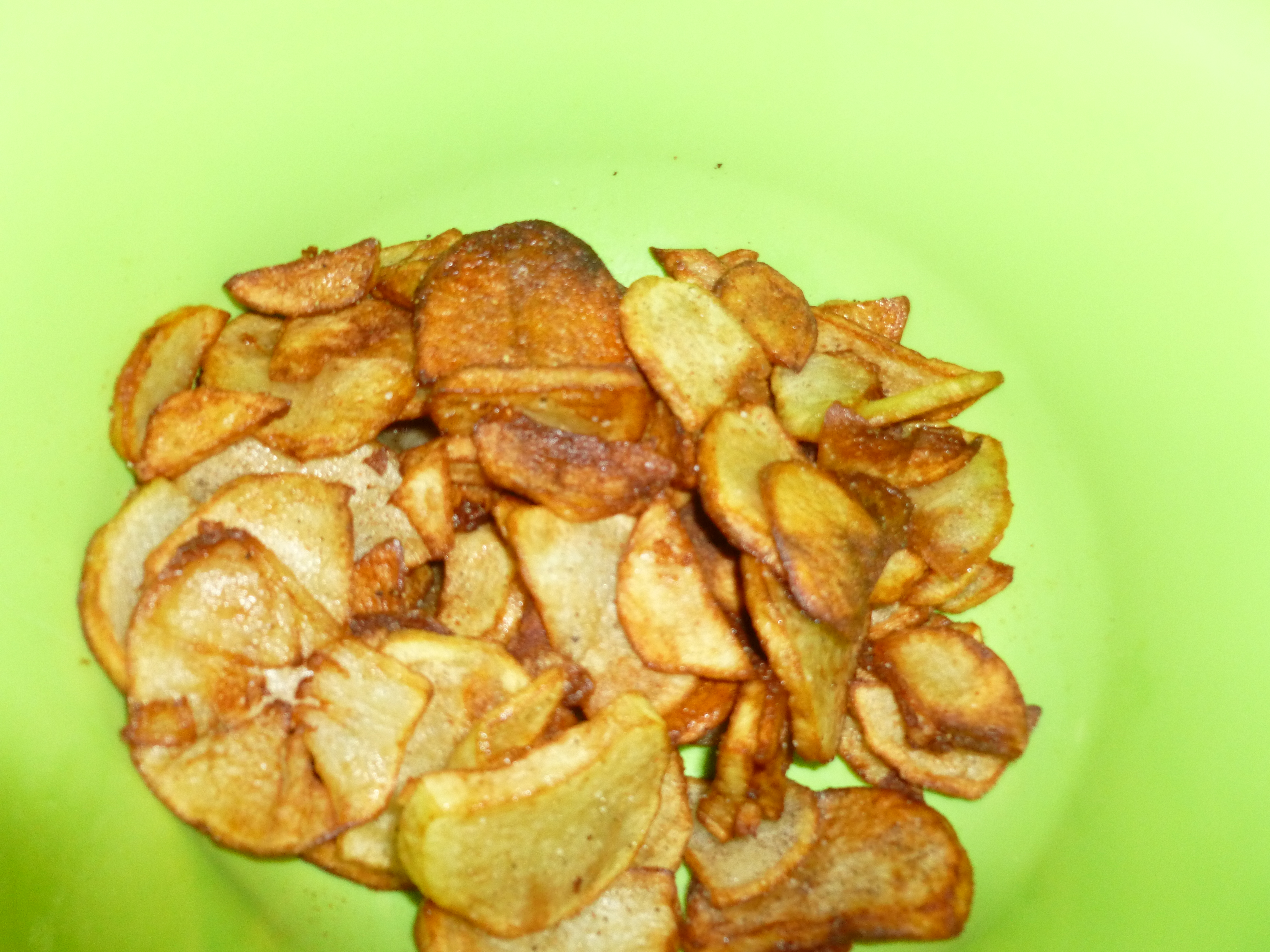 Homemade duck fat fried potato chips (peeled potatoes and duck fat with salt and pepper)