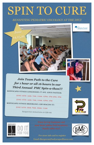 From June 14-16, Candy, Brian and I will be participating in a 16 hour Spin-a-thon to raise money for the PMC (the Pan-Mass Challenge).