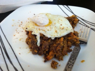 The Ground Beef Sweet Potato Hash with an Egg Sunny-Side Up