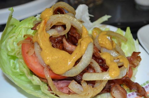 Of course no meal is complete without some veggies! We made a nice little romaine salad with a creamy mustard dressing to go along with the burgers.