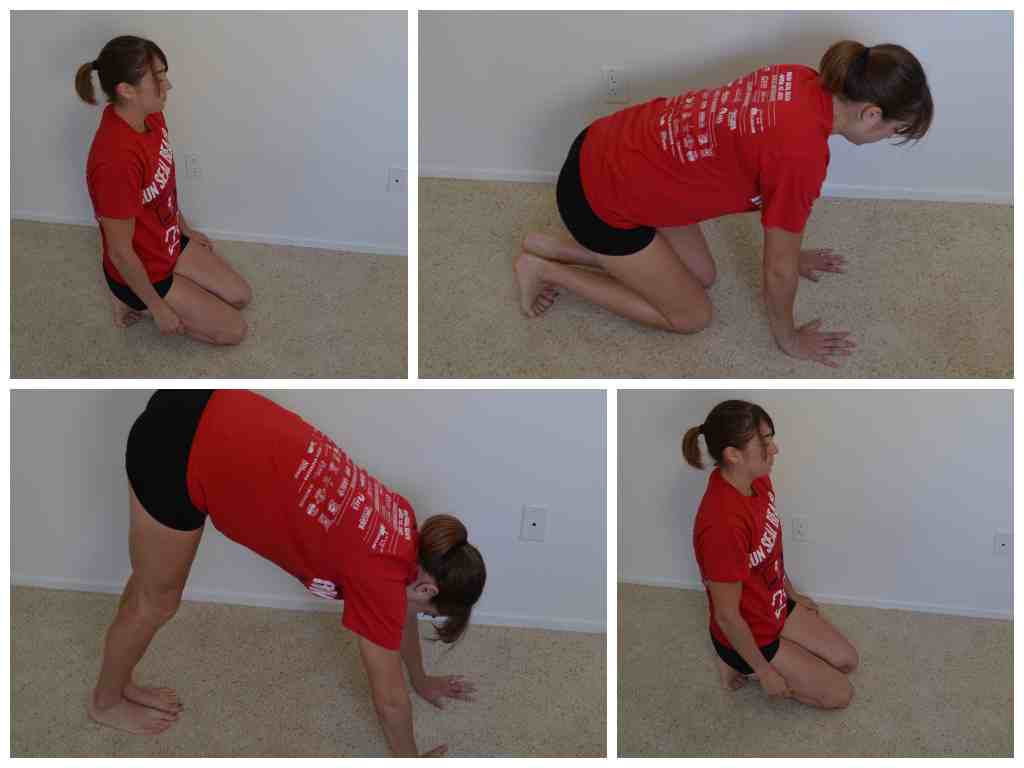 10. Bear Squat – Kneel on the ground with your hands on the ground in front of you. The closer you place your hands to your knees, the harder the stretch will be. Press your butt up into the air, driving your heels into the ground. Feel a nice stretch down your calves and hamstrings as you try to get your legs as straight as possible. Hold for 1-2 seconds and then drop back down to your knees before repeating.