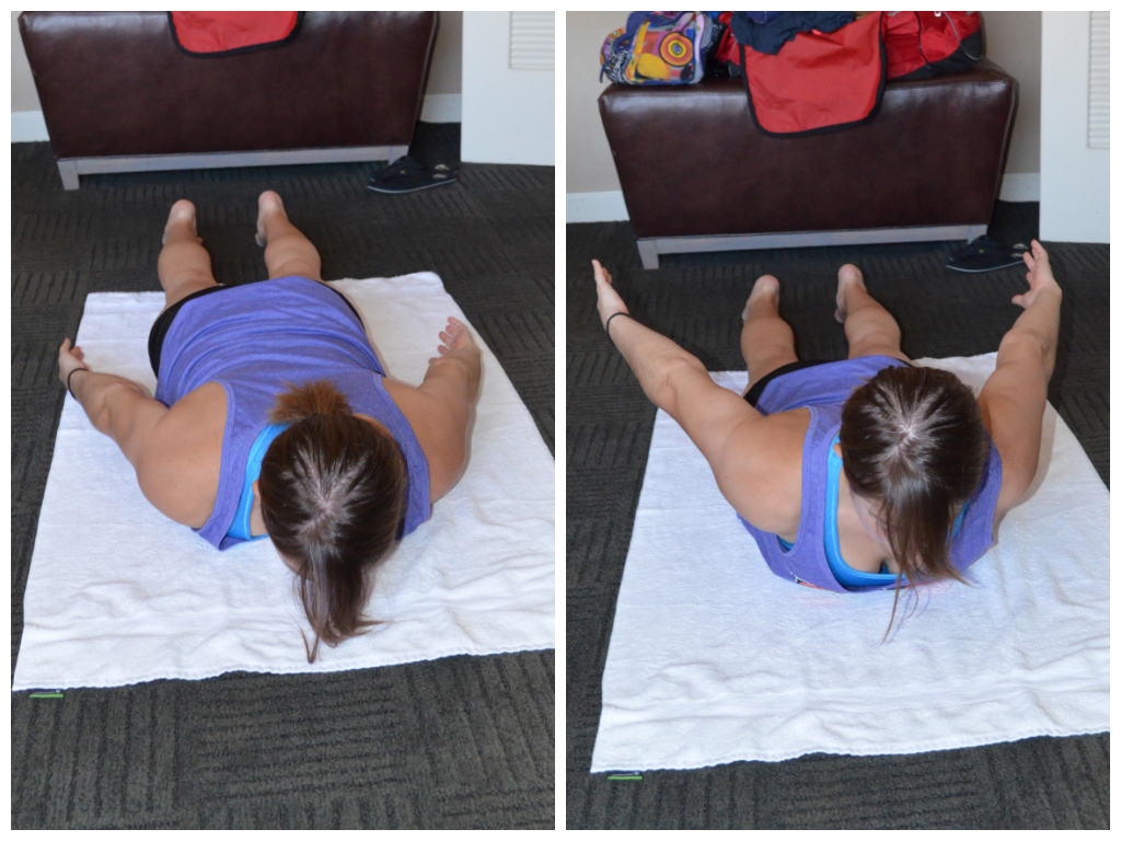 Here are 10 moves to use in your Hotel Room Workout! (I recommend putting down a towel instead of cuddling with the ground…just saying….) I used all of these in a great full body workout while staying in Palm Springs last week.