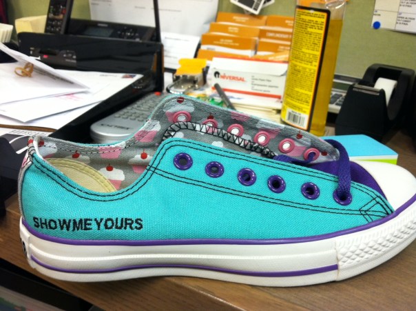 Plus they have like my three favorite colors on them – blue/green, purple and pink!