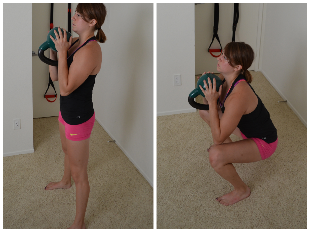 10. Front Squat – Potentially my favorite move on the list. The front squat works your legs AND your core. Any time you front load, be it a kettlebell, barbell or sandbag, you cause your core to engage to hold you upright. Seriously feel my core working so hard every time I do these. LOVE IT! Works a major muscle group, is incredibly functional and forces your core to really brace and stabilize during a functional movement!