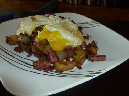 After surviving the Filthy 50 this morning, Ryan and I came back and made some breakfast – Corned Beef Hash and a not so Irish Coffee.