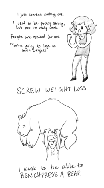 The victory of doing something as simple as lifting a heavier weight than you lifted before is empowering.