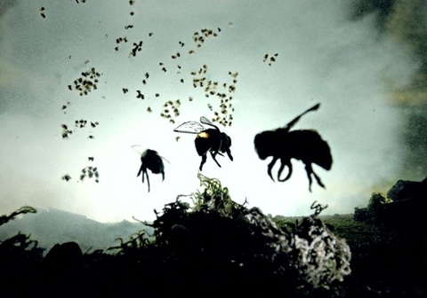 Anyway, yesterday we watched Vanishing of the Bees. The documentary talks about the fact that honeybees have been literally disappearing from their hives…just sort of dying off.
