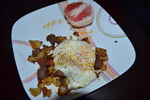 Here was my breakfast/lunch from this morning. (And one of the very rare times that I do in fact eat beans…Rare…But it happens.)